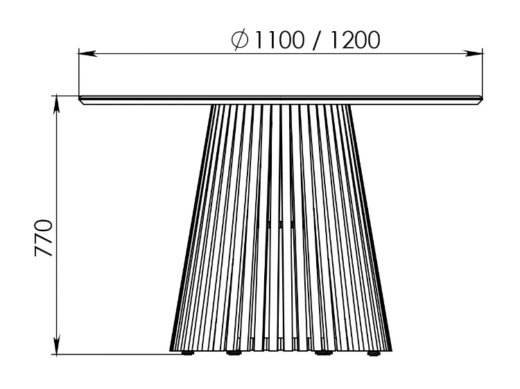 Its round silhouette fosters intimate gatherings, offering generous space for family and guests alike. Crafted with precision, the circular tabletop paired with vertical slats creates a timeless design that exudes sophistication and contemporary luxury.